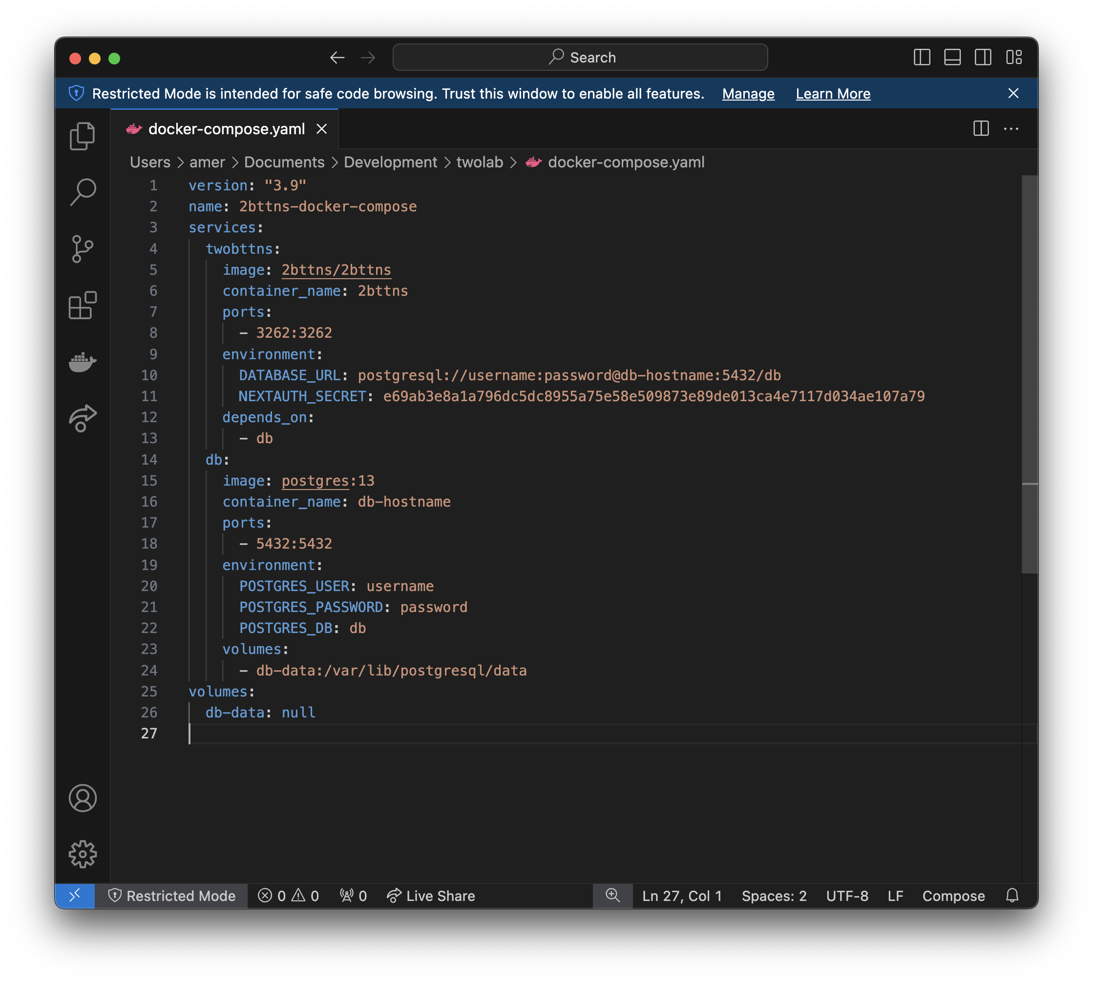 docker volume rm 2bttns-docker-compose_db-data